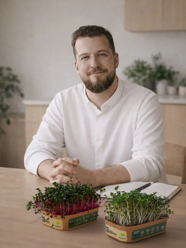 Anže je srce znamke GreenGina, specializirane za mikrozelenje, kalčke in urbano vrtnarjenje. S svojim delom združuje navdušenje nad trajnostnim življenjem in trajnostnimi praksami v produkte, ki spodbujajo bolj zdravo prehranjevanje.