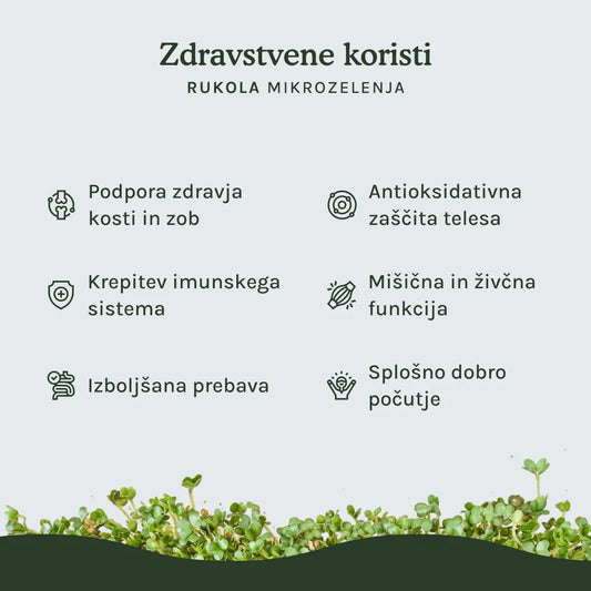 Vsak paket vsebuje ekološka semena, substrat in kraft škatlico. Vse, kar potrebuješ za takojšen začetek gojenja mikrozelenjave, je v tem paketu.